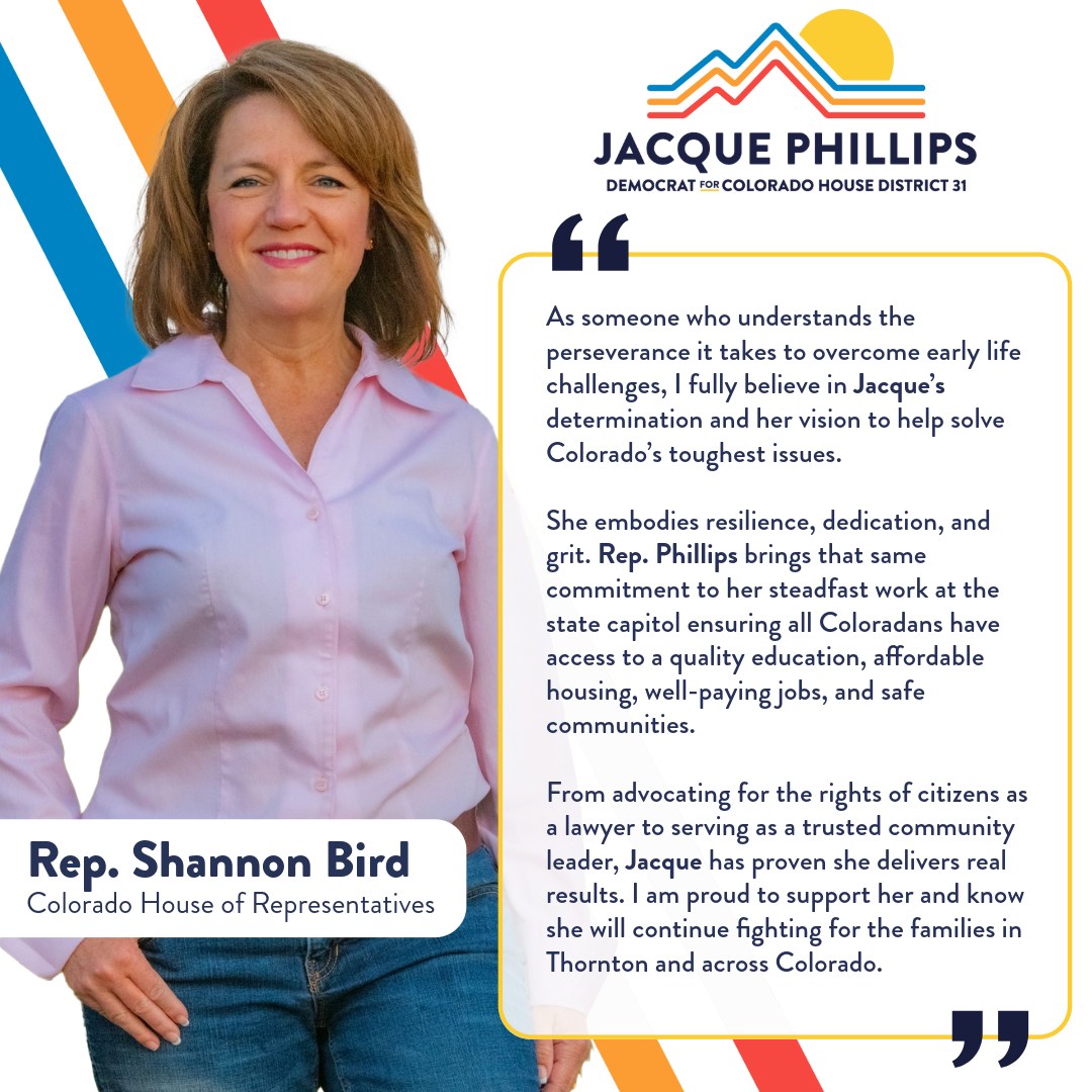 Her experience on Thornton City Council, and extensive history of community activism supporting public education, housing affordability, and local health and safety means Jacque isn’t just a legislator. She’s a neighbor who cares.